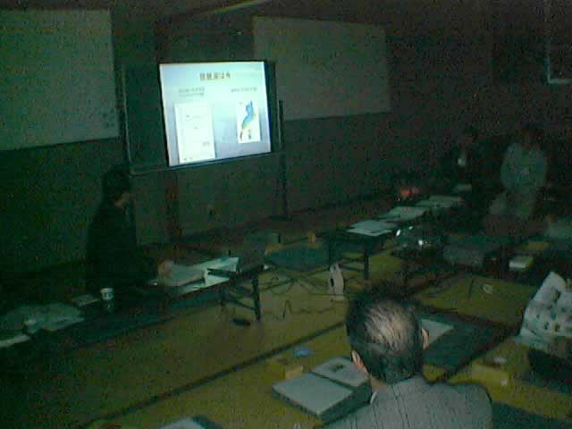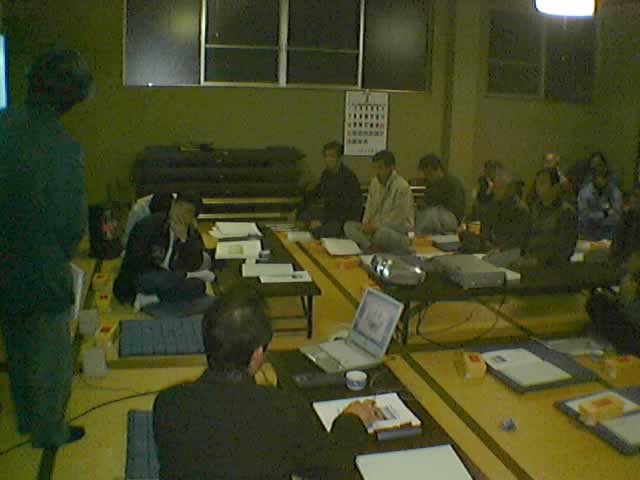 地域住民の方20数人の参加により、早崎公民館にて午後7時からプログラムが開始されました。 マルセイ建設株式会社の小林さんからオープニング挨拶がありました。 |
