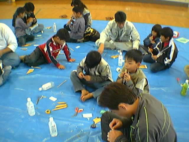 奥びわスポーツの森へ戻り、みんなでヨシ笛作りに挑戦!!音を鳴らす時のコツがなかなか難しかったです。