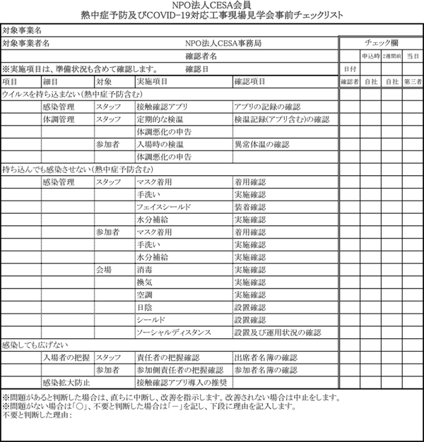 以下の事項を遵守し、感染防止対策を行います
